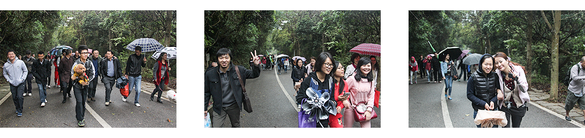 新年登山活动,张涉总裁亲自带领高管团队参加,全体龙澄人热情高涨,兴致勃勃,帅哥美女一路上欢声笑语,寒暄问暖。平时很少回来公司的营销战友们,相聚在一起有说不完的话,在不知不觉的一路行走中,各部门同事之间达到了互动交流、思想沟通的效果。虽然天公不做美,淅淅沥沥下起了小雨,有雨伞的员工自觉为没带伞的同事撑起同一把伞,体现了龙澄人团结友爱,促进了同事友谊,增进了相互了解。