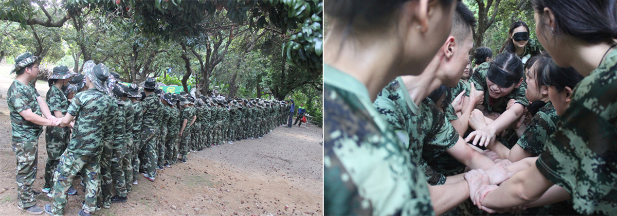 “生命云梯”项目中,所有队员排成两行,手搭着手建成一个“云梯”,队员蒙眼挨个从上面爬过。队员们的眼睛湿润了,此时的他们没有矫情、没有犹豫、也没有害怕和怨言,剩下的只是信任和责任。团队力量源于责任与信任、心态与坚持,这就是龙澄的协作精神!